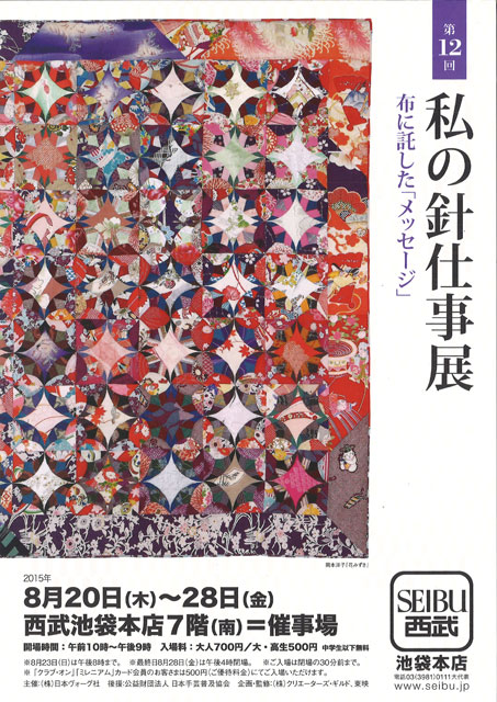 【東京】第12回私の針仕事展(8/20~28)