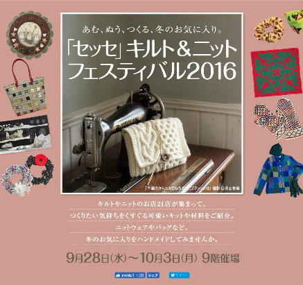 【大阪】阪急うめだセッセ キルト&ニットフェスタ2015(9/30~10/5)
