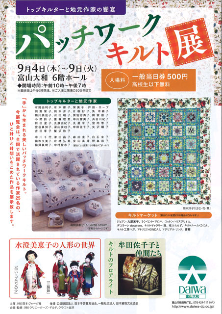 【富山】パッチワークキルト展(9/4~9/9)